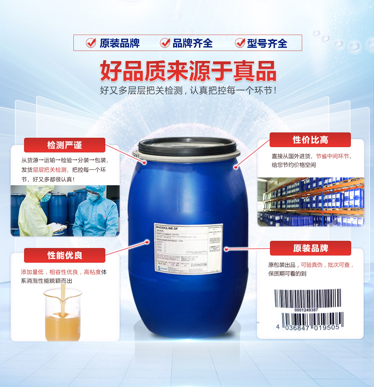 產(chǎn)品特點:快速消泡、能在水中分散而變成具適度穩(wěn)定性的乳液、效率高、經(jīng)濟效益好、在酸性及堿性系統(tǒng)中皆有效、效能持久、在變化的酸堿條件下保持穩(wěn)定、不以硅硐為基礎
